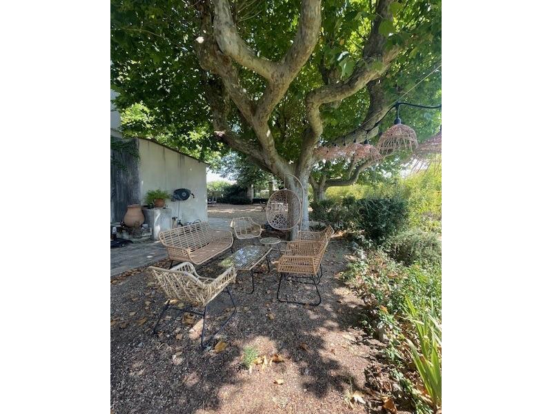 La propriété s'harmonise autour d'un patio ombragé et s'étend sur 290 m² habitables avec un étage.